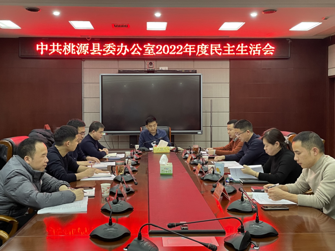 近日,中共桃源縣委辦公室領(lǐng)導(dǎo)班子召開2022年度民主生活會(huì),縣委辦常務(wù)副主任彭暉主持會(huì)議并作表態(tài)發(fā)言??h委常委、縣委辦主任于惠平,縣紀(jì)委副書記、縣監(jiān)委副主任熊愛國到會(huì)指導(dǎo)。