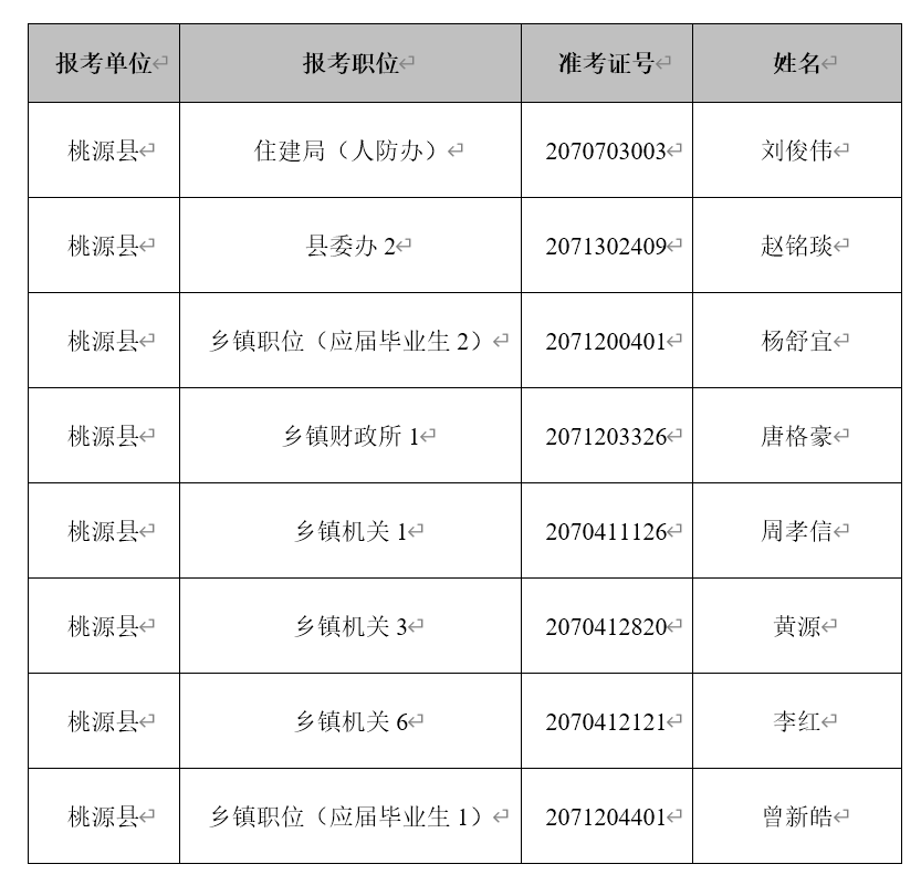根據(jù)《湖南省2022年考試錄用公務(wù)員公告》《湖南省2022年度考試錄用公務(wù)員工作實(shí)施方案》(湘組〔2022〕21號)等文件精神,經(jīng)體檢醫(yī)院體檢,現(xiàn)將體檢合格人員名單公示如下: